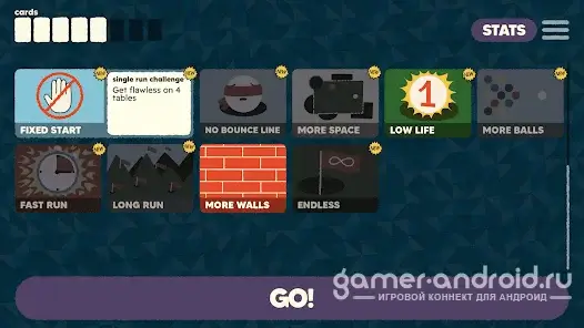 По мере прохождения вы формируете свой стиль игры, используя карты из специальной колоды. Каждая карта меняет правила и условия уровня, превращая обычный бильярд в настраиваемое приключение. Нужна максимальная реакция? Включайте Fast Run — времени на прицеливание почти нет. Хотите хаоса? Добавляйте порталы прямо на стол. Интересно, как поведут себя стеклянные шары? Это тоже можно включить.