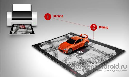 Распечатайте листок с маркером и положите его на то место где ходите начать гонку, внимания в мобильном устройстве должна быть фотокамера! В игре превосходная 3D графика с дополненной реальность.