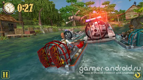 Shine Runner - это гонки по деревенским правилам на плоскодонных лодках на воздушной тяги! Прочувствуй всю страсть, мчась на лодке по камышам, подпрыгивая на аллигаторах и тараня деревья на берегу! Веселая игра, с хорошей 3D графикой, а так же в игре, есть возможность крушить практически все что Вы увидите!