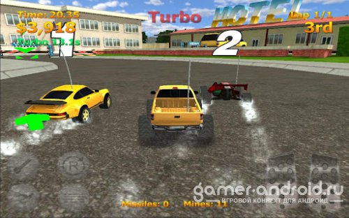 RC Mini Racers - захватывающая игра, где Вашей задачей будет управлять машинкой на пульте управлений. В игре более 32 трасс и пять круговых треков, не каких правил, сделайте всё чтобы победить! Разгромите своих соперников с помощью оружия, стреляйте, подрывайте и сталкивайте с трассы своих соперников и приезжайте первым на финиш! В игре, есть функция прокачки машинки, там Вы сможете всячески улучшать свой автомобиль.