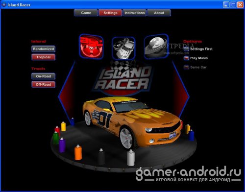 Island Racer- эта отличная гонка неблещущая какими-либо супер наворотами, но как говорится, вся простое самое лучшее. Итак, вы ездиете на вашем болиде на одном острове, наполненном самыми разнообразными трассами - от простых до водных и снежных.