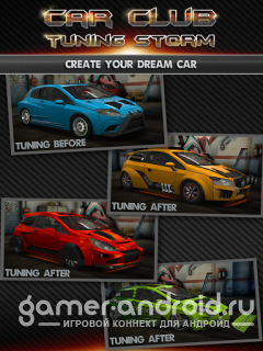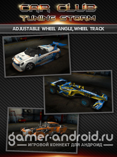 Car Club:Tuning Storm - самая лучшая игра, в которой практически нет ограничений по тюнинг дизайну. Огромнейший выбор различных модификаций, множество машин и все это в превосходной графике 3D. Каждый автомобиль можно изменить до неузнаваемости, благодаря большому количеству сменных частей. И это еще не все, после тюнинг модификации, вы сможете прокатиться на своем автомобиле в безжалостной и азартной гонке против конкурентов.