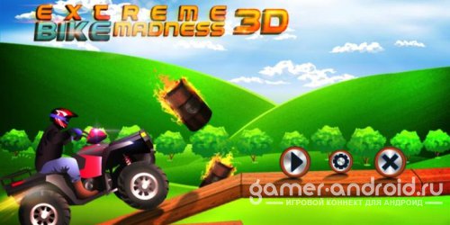 Extreme Bike Madness 3D - Экстремальные гонки на квадроциклах с препятствиями. В игре вам нужно гнать из-за всех сил, преодолевать трамплины и собирать монетки, делать все сразу будет не просто, вы должны хорошо держать баланс. В игре реалистичные эффекты и хорошая 3D-Графика.