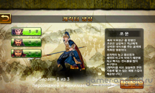 The Heroes Of The Three Kingdoms - это отличная игра для Android, в игре вас ждут многочисленный сражения! Выберете себе героя из трех персонажей и отправляйтесь в кровопролитный бой на захват огромных территорий, лагере и крепостей. А также своего героя можно улучшать, выполняя миссий и играя в мини-игры.