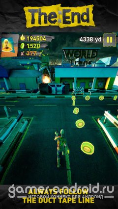 TheEndApp. Вы оказались среди развалин и горящих домов, вроде бы уже пора сдаться и ждать своего конца, но вы не из таких, вы соберете всю силу и волю в кудак и рванете вперед. По пути вам важно собрать как можно больше клейкой ленты и сладостей, они смогут вам помочь в вашем нелегком выживании. Разнообразная 3D графика доставит вам массу удовольствий, вы бостро привыкните и войдете во вкус. Игра очень похожа на знаменитую Subway Surfers Rio
