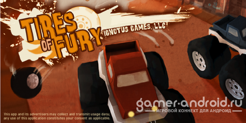 Tires of Fury Monster Truck Racing - грозные джипы монстры ждут вас, в увлекательной гоночной игре. На ваш выбор будет предложено 6 уникальных джипов, каждый со своими характеристиками, которые можно модернизировать. Отличная графика, различные пейзажные треки, возможность игры против компьютера и интернет или Wi-Fi до 7 игроков. В игре также есть различные бонусы такие как ракеты, нитро, нефтяные пятна, это поможет вам прийти к финишу первым.