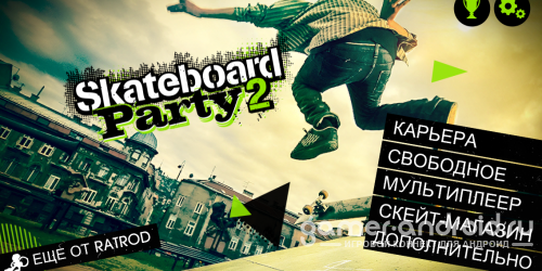 Skateboard Party 2 - встречайте классный симулятор езды на скейтборде на ваше устройство под Андроид. Вас ждет красивая 3D графика, улётные трюки и комбо, игра с друзьями в онлайн, 9 персонажей, 8 мест для катания, и многое другое.