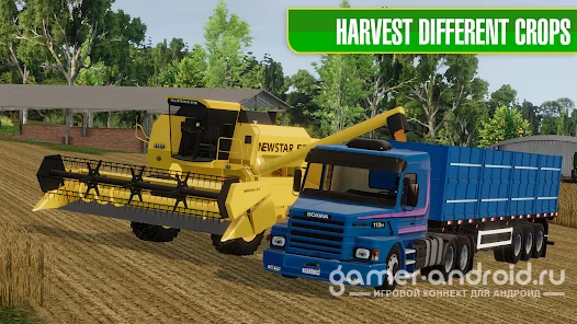 - Большой выбор сельскохозяйственной техники: тракторы, грузовики, комбайны и другая техника в стиле реальной бразильской агроиндустрии;