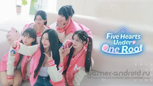 Five Hearts Under One Roof — FMV-симулятор в стиле ток-шоу, где вы можете завести романтические отношения с участниками особого дома, где собрались пять человек. Игрок отвечает на вопросы, от которых зависит развитие отношений и сюжет игры. Можно медленно общаться или сразу строить романтические линии.