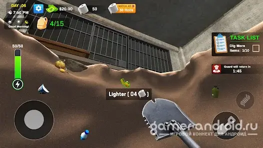 Каждый выкопанный метр — маленькая победа. Ты скрываешь следы, собираешь полезные предметы и обмениваешь их на инструменты получше. Торговля — главный двигатель прогресса: без качественных лопат, прочных верёвок и вместительных сумок побег не состоится.