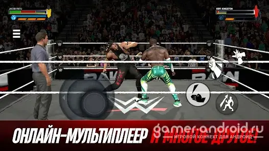 В игре вас ждут фирменные выходы на арену, динамические бои с использованием предметов из под ринга, профессиональные комментаторы и много другое. Вообще круто что игра появилась на телефонах, теперь играть можно везде!