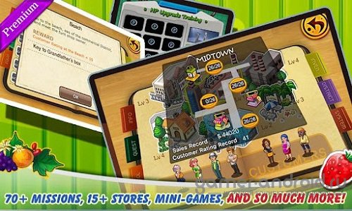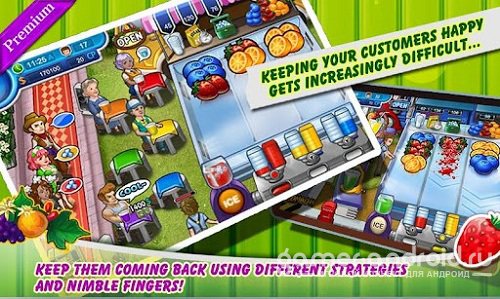 Juice 'Em Up! 2 Premium - полный процесс создания и продажа в магазинах фруктовых соков, на вашем Android устройстве. Вас вытащили из молодежных тусовок, чтобы Вы попытались спасти компанию соков Вашего дедушки. Создайте свою цепь производства фруктовых соков, из маленьких киосков в огромные магазины в разных районах города. Вы должны изучить и покорить многие районы города, чтобы завоевывать рынок сбыта фруктовых соков.