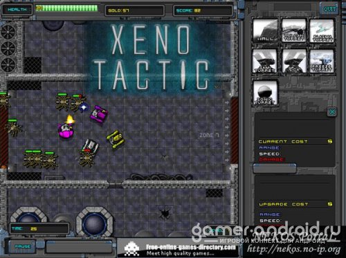 Xeno Tactic существуют 9 различных типов башен, вы должны строить стены максимально неудобные для врага. Каждую башню можно усовершенствовать 10 раз. Улучшать можно все: урон, скорострельность и дальность атак. Разновидность оружия не может не радовать, ведь 9 видов совсем не мало! Лазеры, ракеты, пулеметы, плазма и т.д.