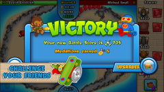 Bloons TD Battles - битва обезьян. Сразитесь в схватке PvP против своего оппонента, показав лучшую стратегию боя и зашиты. Ваша цель одолеть противника применяя нужную в схватке тактику и стратегию. В вашем распоряжении будет 19 башен и обезьян, с возможностью обновления. Вы будете командовать когда нападать, а когда лучше защищаться. Одолевайте противников и получайте за это награды. Вперед в жестокую схватку один на один.