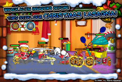 Garfield Saves The Holidays - встречайте новогоднюю игру про Гарфилда и его друзей. В этой игре вы будите сражаться против прилетевших на землю пришельцев, которые хотят отменить самый ожидаемый праздник в году. Вы с котом и его друзьями должны защитить Санту и его эльфов, тем самым не дать злоумышленникам подвергнуть к срыву Новый Год. Вперед на защиту резиденции Санты.