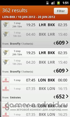 Momondo - это приложения поможет тем людям которые собираются отправятся в отпуск в далекие страны или занятым людям которые постоянно в разъездах по всему миру. Приложение содержит более чем 700 авиакомпаний и билетных агентств.