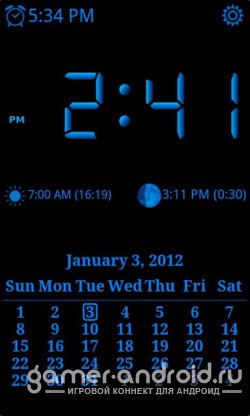 AdyClock - красивые цыфровые ночные часы для андроид устройств. Кроме часов есть еще и будильник, а также большое количество других функций. Кроме того, есть несколько цветовых тем для часов.