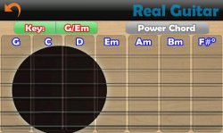 Real guitar - отличный, простой в использовании симулятор гитары на Android OS! С его помощью вы сможете играть на гитаре даже без гитары, а прямо на своем устройстве. Одним из главных плюсов приложения есть то, что оно поддерживания мультитач. Но есть и много других полезных особенностей, таких как: возможность выбирать из 2 режимов, целых 3 типа гитары, режим записи того, что вы проиграли ну и многое другие.