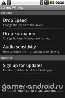 Steamy Window - веселое приложение, которое позволит вам повеселится, а именно приложение позволит вам рисовать на запотевшем стекле пальцем. Капли будут стекать по экрану, а если дунуть в микрофон, тогда подимется пара. Более того есть возможность установить картинку на фон, не зависимо до рисования или во время рисования.