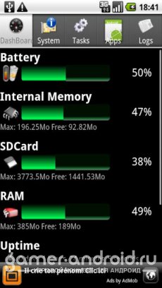 Android System Info - отличное приложение, которое дает возможность просмотреть детальную информацию о вашем устройстве. Приложение дает подробную информацию об операционной системе, батерее, памяти ( RAM и т.п.) и многом другом.