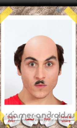 Make me bald - веселое приложение, которое позволит поразвлекаться и посмеяться, а именно данное приложение позволит использовать палец как бритву и побрить на фотографиях своих друзей или же свою собственную фотографию. Кроме того, что можно побрить фотографию, можно еще прикрепить усы.