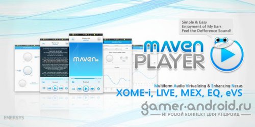 MAVEN Music Player (3D,Lyrics) - многофункциональный и совсем новый музыкальный проигрыватель для ваших телефонов и планшетов. В плеере очень много полезных настроек, с которыми вы сможете насладиться качеством музыки. Вы сможете настроить эквалайзер или же выбрать уже готовые профили эквалайзера. Плеер играет довольно громко с качественным звучанием. Все меломанам советую.