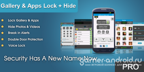 Apps Lock & Gallery Hider Pro - программа которая поможет спрятать любые документы, фотографии, видео, картинки от любопытных глаз. Вы сможете поставить пароль на любые файлы и только вы сможете теперь их открыть и увидеть. Очень нужная программа для любого телефона или планшета.
