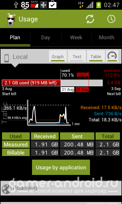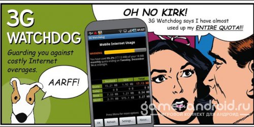 3G Watchdog Pro - очень полезная программа для тех у кого интернет не безлимитный. В программе можно задать количество пакетов, которое может быть максимально получено за день, неделю, месяц. Программа вас будет уведомлять, когда трафик заканчивается. Так же может показать вам отчет.