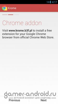Krome Обновлено: 03.09.13 Версия: 2.2 Требования: Android Android 2.0+ Жанр: Информационные Размер: 0.7mb Мб Наша оценка 0 В избранное Скачать Запросить обновление 0 0 Krome - хорошее приложение для синхронизации с Chrome на ПК. Все что нужно это скачать данную программу и установить на свой смартфон и Chrome расширение. Можно приступать к работе.Фото Подробнее Скачать Krome Андроид бесплатно Krome Размер: 0.7mb Мб, Скачали ~8 340 раз. .apk Скачать Комментарии Минимальная длина комментария - 50 знаков. комментарии модерируются Отправить Комментариев еще нет. Вы можете стать первым!