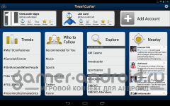 TweetCaster Pro for Twitter - потрясающий и самый полезный клиент для Twitter. Обладает огромными возможностями, высокой скоростью. Есть возможность поиска твиттов. TweetCaster это не только многофункциональный клиент, но и яркий, удобный интерфейс. Приложение отлично работает на всех планшетах, помимо того имеет специальный виджет для отображения важной информации на рабочем столе. Можно отправлять сообщения одновременно в Twitter и Facebook, имеет множество тем, возможность захода сразу с нескольких аккаунтов, смены цветов, шрифтов и много другого.