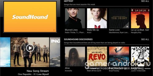 SoundHound - уникальная и очень полезная программа, помогающая вам распознать музыку или видео. Принцип работы очень простой, включаете программу и подносите устройство к источнику звука, можно и самому напеть мотив. Помимо названия песни можно будет посмотреть и ее текст.