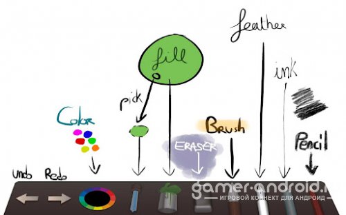 • шесть инструментов для рисования