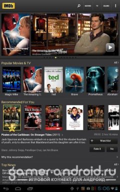 С IMDb Movies & TV у Вас будет возможность узнать расписание фильмов, телепередач. Вы сможете посмотреть трейлеры новинок или же просто просмотреть базу данных IMDb. В вашем распоряжении будет свыше 1.5 миллионов фильмов и телесериалов; свыше 3.2 миллионов актеров, актрис, режиссеров.