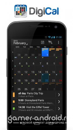 DigiCal - отличный и стильный календарь на андроид с большим количеством полезных функций. Нужно отметить, что даный календарь очень удобный и имеет красивое оформление, а также светлую и темную Holo тему. Также есть 4 функциональных и отлично оформленых виджета.