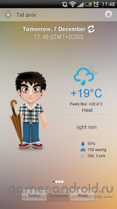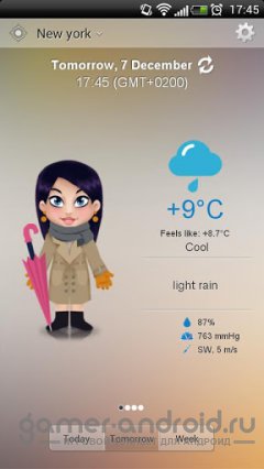 Программа Meteoprog - Одевайся по погоде, позволяет просматривать прогноз погоды по всему миру! Одна из главных особенностей программы - это то, что она показывает как нужно одеваться, можно выбрать персонажа, мальчика или девочку.