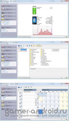 Теперь ваш коммуникатор полностью под контролем, клиент для PC MyPhoneExplorer обладает огромным функционалом. Можно запросто написать смс, кому-нибудь позвонить, поработать с файлововой системой, или же, вызвать любую установленную программу. Кроме того, конечно же доступны календарь , контакты и вызовы. Отдельно хочу обратить внимание на работу с приложениями: во первых сразу видим версию, размер и дату установки. Из действий: можно сохранять приложения в виде apk файлов на компьютер, удалять их с телефона или устанавливать новые. Так что, для любителей «old school» – это приложение самое оно.