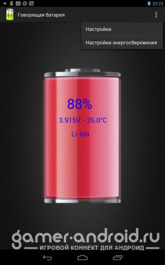 Говорящая батарея - Приложение для мониторинга состояния зарядки батареи. Озвучивает состояние батареи и способы подключения устройства. В приложение много точечных настроек, режим "энергосбережения", который отключает wi-fi при отсутствие подключения через заданное время. Полезное приложение.