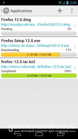 Loader Droid - простой, но очень удобный download менеджер, который умеет скачивать файлы любого формата, без ограничений скорости. Поддерживается докачка файлов, то есть, если было потеряно интернет соединение или по каким-то другим причинам закачка была прервана, то вы сможете возобновить ее и менеджер будет загружать с того места, с какого разьеденило и не нужно скачивать файл снова. Также имеется очень много и других полезный функций.