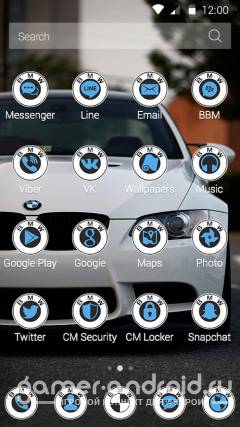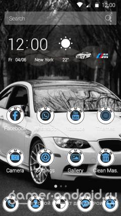 Белая БМВ - оригинальная авто тема для вашего телефона которая подчеркнет его уникальность среде друзей, в тему включены стилизованные иконки и набор обоев с автомобилем марки БМВ. Тема специально разработана для авто любителей марки БМВ.