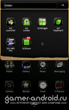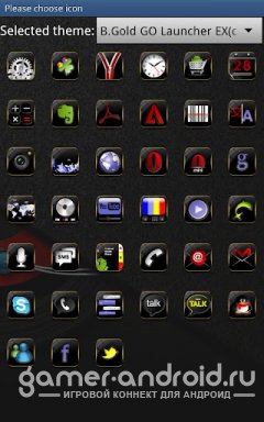 B.Gold Golauncher EX Theme - Новая стильная тема, тема выполнена в черно-золотых оттенках. Тема полностью заменяет папки, иконки и в результате вы получаете совершенно новый смартфон но ОС Android.