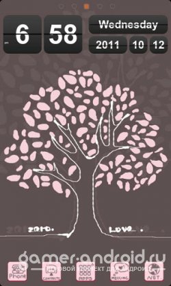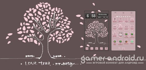 Lovetree Theme GO Launcher EX, которая сделана в пурпуровых цветах. Тема включает в себя много иконок приложейни, обоев. Также на данной теме вы увидите розовое дерево. Все это в сочетании выглядит очень красиво.