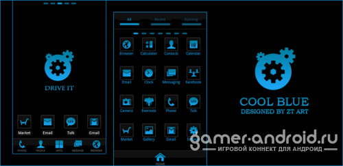 Cool Blue Theme GO Launcher EX - еще одна красивая тема для GO Launcher EX от разработчика ZT.art. На этот раз тема выполнена в темно-синем стиле и все иконки также синие. Можно даже сказать, что тема выполнена в неоновом стиле. Красиво выглядит, имеет множетсо замечательных иконок, обоев.