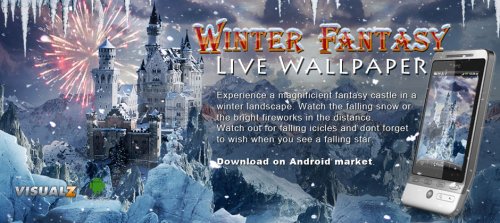 Winter Fantasy - хорошие зимние живые обои для Андроид. Обои имеют множество настроек, в месте прикосновения пальца появляется снег и очень здорово выглядит.