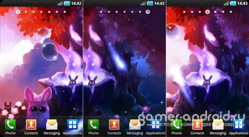 Bunny Forest - это загадочные обои для Android на них вы увидите дремучие леса и необычных животных! Дремучий лес потихоньку переходит в красивый закат, а также вечером идет небольшой дождик и падают пожелтевшие листья.