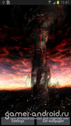 Замечательные трехмерные живые обои Торнадо от maxelus. Торнадо является самым могучим и разрушительным погодным явлением. В тоже время оно очень красивое и привлекает глаз человека. Эти обои отлично будут смотреться на вашем телефоне Android. А кроме стандартной красоты, вы сможете создавать свои обои с торнадо, менять цвет облака, земли, пыли, грязи, камней в торнадо.