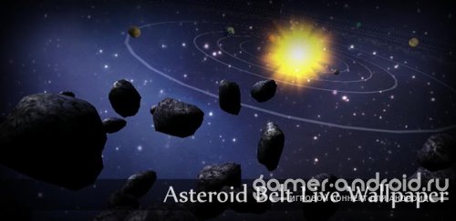 Asteroid Belt Live Wallpaper - это захватывающие живые обои на тематику космоса. Можно сказать, у Вас на ладони будет солнечная система! Отличные живые обои в 3D графикой, обои поддерживают любое разрешения экрана. А также в обоях присутствуют различные настройки, Вы сможете настроить: цвет фона, выставить количество астероидов, скорость вращения астероидов, общею орбиту и т.д.