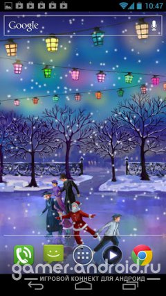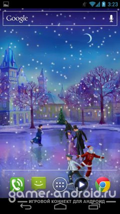 Рождественский Каток - Одни из самых сказочно красивых, новогодних живых обой на рабочий стол Android. На обоях изображена елка, дома и сам каток на котором катаются счастливые дети, Дед мороз. После того как вы поставите данные живые обои ваш телефон наполнится праздничным волшебством))