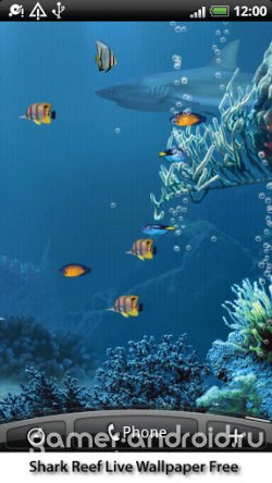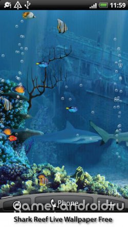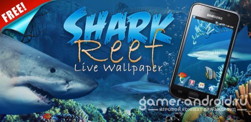 Shark Reef Live Wallpaper - красивые живые обои с плавающей акулой и мелкими рыбками. В обоях вы сможете выбрать три разных уникальных темы и поместить туда акул и экзотических рыбок. Вы сможете выбрать до 9 разных акул смотреть как они будут плавать на экране вашего телефона или планшета. Также вы сможете настроить и другие функции в обоях.