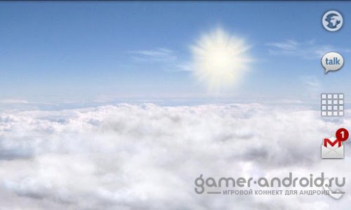 3D Обои в стиле, полет в облаках. Присутствует множество настроек, таких как изменения скорости ветра, высота солнца и луны, плотность облаков, смена освещения в зависимости времени суток.