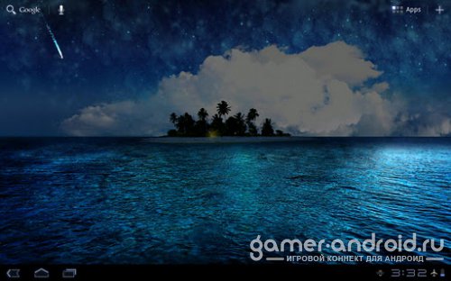 Island Live Wallpaper HD - Шикарный морские живые обои, на обоях изображен морской пейзаж с островом. В обоях также предусмотрена смена дня и ночи, ночь видно как падают звезды и проплывают корабли.